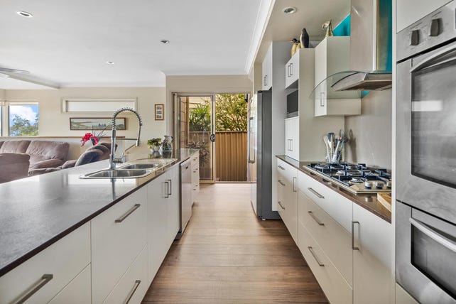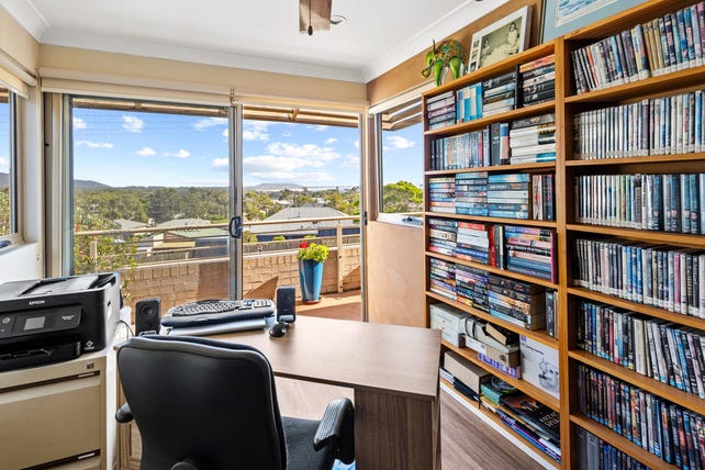 The modern kitchen is a chef's delight, featuring sleek granite benchtops, a gas cook top, and a butler's pantry for added convenience. Adjacent to the living area, a well-sized study provides a perfect workspace, with this entire area complete with access out onto the sizeable entertainment deck, offering views of the surfing reserve and mountain range-ideal for summer gatherings or tranquil evenings.